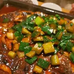 平锅鲤鱼是一道菜品,主料是鲤鱼、洋葱、葱姜蒜许、郫县豆瓣、小香葱、小米椒、老抽、糖、料酒、醋。