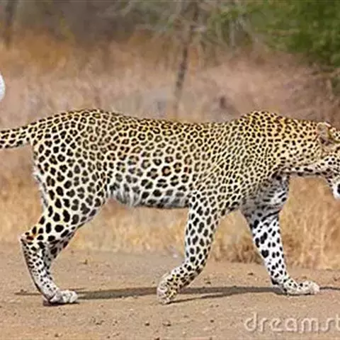 花豹(学名:Panthera pardus)是大型肉食性动物,体形似虎,但明显较小;头小尾长,四肢短健;毛被黄色,满布黑色环斑;头部的斑点小而密,背部的斑点密而较大,斑点呈圆形或椭圆形的梅花状图案,又颇似古代的铜钱,所以又有“金钱豹”之称。前足5趾,后足4趾,爪灰白色,能伸缩。