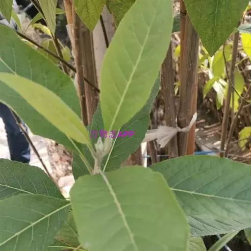 灌木或小乔木,高3-4米。枝粗壮,常扭转,幼时有条纹,上部厚被绒毛。叶片厚纸质,长圆形或近椭圆形,长8-19厘米,宽3.5-8厘米,顶端短尖或钝而中脉延伸成一短硬尖头,基部钝、圆,边全缘或有疏离的胼胝体状小齿,上面无毛,下面薄被灰白色绒毛;中脉在上平坦,在下面极凸起高达2毫米,侧脉7-8对,弧形上升,离缘弯拱连接,网脉极明显;叶柄长2-3厘米,被绒毛。