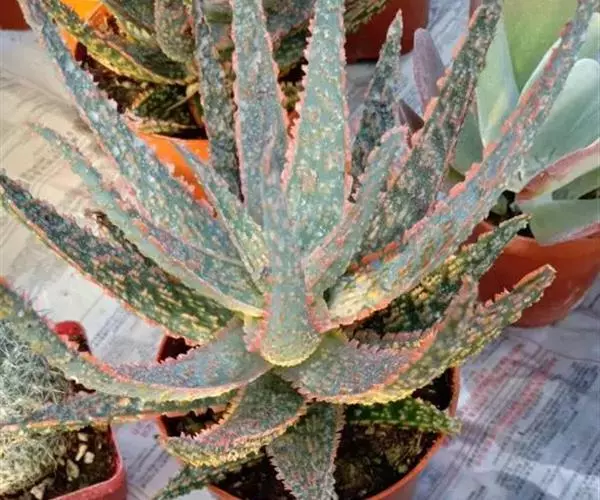 常见病害是芦荟锈病,它会在叶子上形成黑点,较难控制。建议去除受感染的叶子并使植物保持健康。如果受到严重影响,也可以清除整株植物。