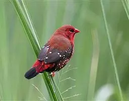 红梅花雀小型鸟类,体长9-10厘米。雄鸟通体朱红色,背、肩、胸等满布白色小斑点,…