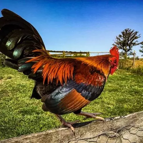 雄鸡是雉科所有种中最大的,长达2米。它们的尾羽很长,雄鸟最特别的地方是有很大、很阔及很长的次级飞羽和尾羽,长翼上装饰着复杂的大眼斑点装饰。雄性小鸡3岁就会有成年的羽毛。