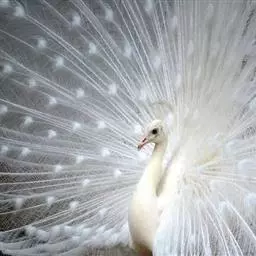 白孔雀,脊椎动物,鸟纲,雉科。其全身洁白无瑕,羽毛无杂色,…