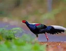 黄腹角雉:是鸟纲、雉科中国特产的一种鸟类。体长约50-65厘米。雄鸟上体栗褐色,…