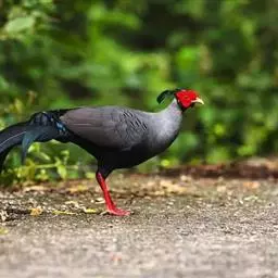 蓝马鸡是珍稀名贵的禽类,羽毛美丽,可作装饰用,头侧绯红,耳羽簇白色、突出于颈部顶上,通体蓝灰色,…