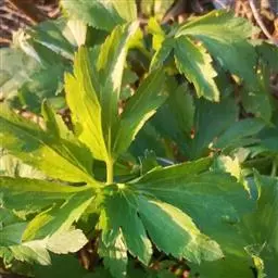 根茎较短,直径3-6mm。须根丛生,棕色至黑褐色,长可达20cm,直径小于1mm,具纵直纹;折断面棕色。叶丛生,黄绿色,叶片卵圆形或长圆形,长0.2-2.8cm,宽0.5-2.2cm;叶柄长1-4cm,上部有狭翅。花皱缩成团,萼片5,近圆形,黄绿色;花瓣棕色,有时脱落,雄蕊多数。气香,味辛。