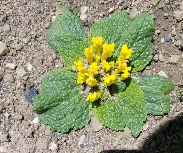 植株高2-9厘米,有短根状茎;须根细长,簇生。叶全部基生,卵形、倒卵形至椭圆状长圆形,长0.3-3厘米,宽5-25毫米,全缘,有3出脉,无毛,常有软骨质边缘;叶柄较宽扁,长1-4厘米,基部鞘状,最后撕裂成纤维状残存。花葶1-3 (-5)条,无毛;花单生,直径1.5-3厘米;萼片5,宽倒卵形,长4-10毫米,近革质,无毛,果后增大,宿存;花瓣橙黄色或表面白色,10-15枚,披针形或长圆形,长7-15毫米,宽1.5-4米,有3-5脉,基部渐狭成爪,蜜槽呈杯状凹穴;花药长0.5-1.2毫米;花托较宽扁。聚合果近球形,直径约1厘米;瘦果楔状菱形,长2.5-3毫米,宽1-1.5毫米,有4条纵肋,背肋明显,喙顶生,短而硬,基部两侧有翼。花果期6月至8月。