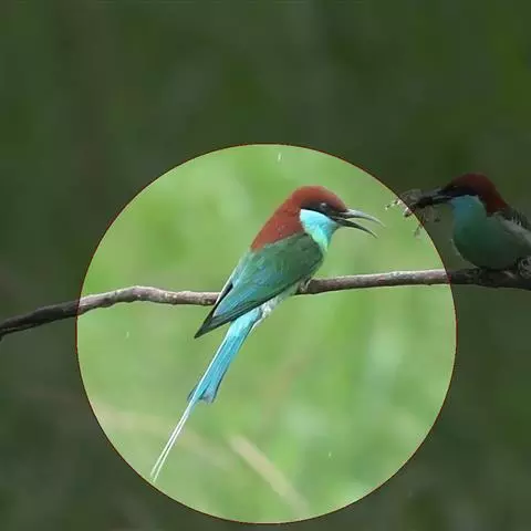 蓝喉蜂是蜂虎科蜂虎属鸟类。体长26-28厘米,嘴长而弯曲,有明显细长的中央尾羽。…