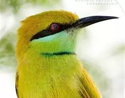 黄喉蜂虎属中型鸟类,体长23-30厘米。喉黄色,其下有一窄的黑色胸带;胸带以下的整个下体蓝绿色。…