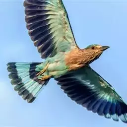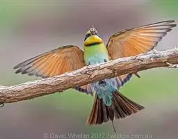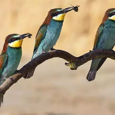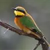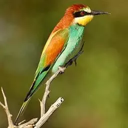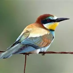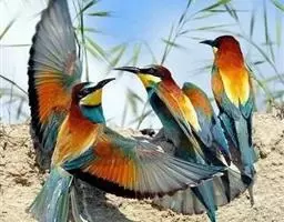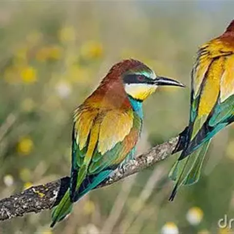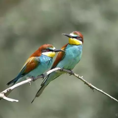 蓝颊蜂虎:是蜂虎科、蜂虎属的鸟类,共有2个亚种。体长27-33厘米,翼展46-49厘米,…