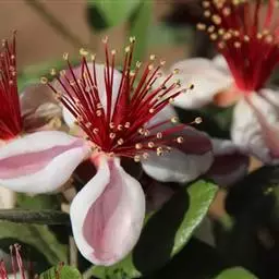 草莓番石榴是番石榴属植物,株高可达2米,树皮平滑,叶对生,倒卵形或椭圆形,先端钝,全缘,厚革质,…