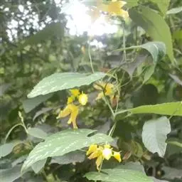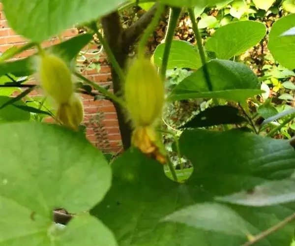 雌雄异株;雄花单生或聚生于短枝的上端呈假总状花序,有时2-3花生于总梗上,花梗细长,长1.5-3.5厘米,被柔软的长柔毛;花萼筒极短,近辐状,长约3-4毫米,上端径7-8毫米,裂片披针形,向外反折,长12-13毫米,宽2-3毫米,具3脉,两面有长柔毛;花冠黄色,裂片长圆形,长2-2.5厘米,宽0.8-1.2厘米,上部向外反折,先端稍急尖,具5条明显的脉,外面被短柔毛,内面有极短的疣状腺点;雄蕊5,着生在花萼筒檐部,其中1枚分离,其余4枚两两稍靠合,花丝极短,有短柔毛,长2-2.5毫米,花药卵形,长约2毫米;退化子房半球形。雌花单生,花梗细,长1-2厘米,有长柔毛;花萼和花冠雌雄花;退化雌蕊5,棒状,长约2毫米;子房长圆形,长0.5-0.8厘米,外面密被淡黄色长柔毛,花柱无毛,自3-4毫米处分3叉,分叉部分长约3毫米,柱头膨大,肾形,2裂。果实卵状长圆形,长4-5厘米,径2.8厘米,顶端有残留的柱基,基部稍变狭,表面橙黄色或红棕色,有光泽,被柔毛,具10条明显的纵纹。种子卵形,黑色,平滑无毛,长4-4.3毫米,宽2.5-3毫米,厚1.5毫米。花期6-8月,果期8-10月。
