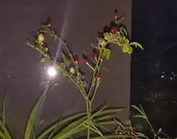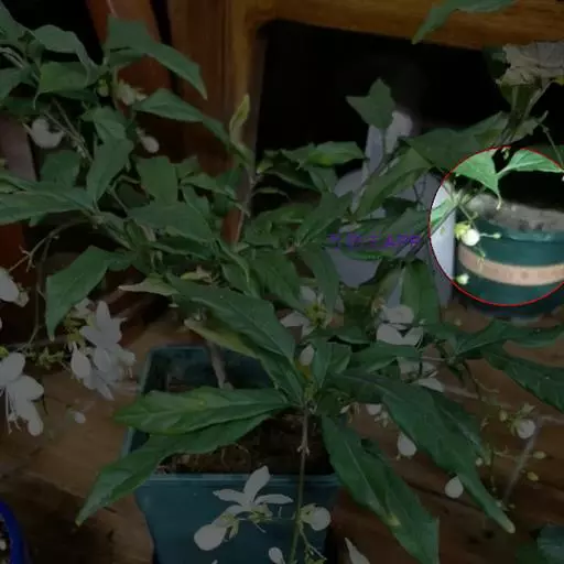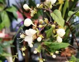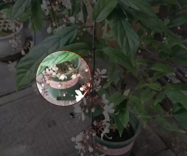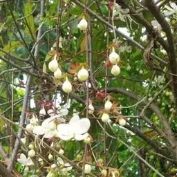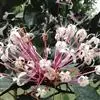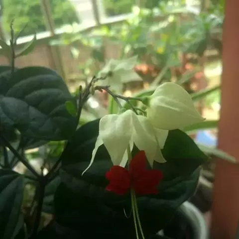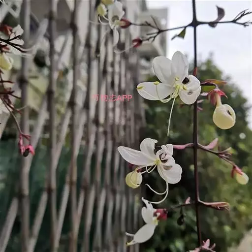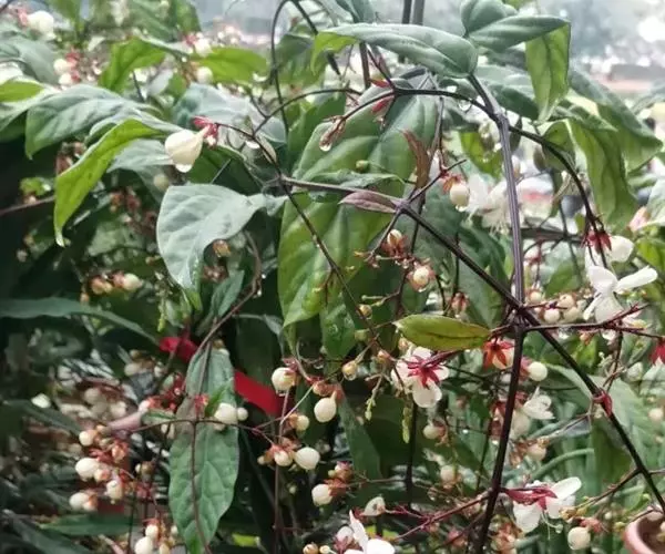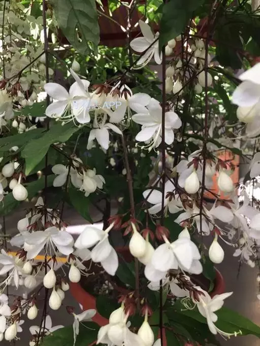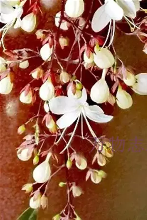 垂茉莉又名垂枝茉莉、黑叶龙吐珠,花朵形似白蝴蝶。枝条纤细,花姿飘逸,盛开时花香扑鼻,果期为春夏之际。果成熟时,花蕚增大增厚,由鲜红色转为紫红色,衬托着小巧玲珑果实。球形核果,初时黄绿色,成熟后光亮紫黑色,倒挂,故有“黑叶龙吐珠”之称。