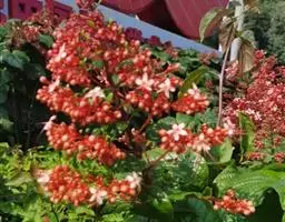 烟火树 Merr.)是唇形科、大青属常绿灌木或小乔木,株高可达4米。幼枝方形,墨绿色。叶对生,…