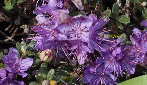 密枝杜鹃(学名:Rhododendron fastigiatum Franch. ):常绿灌木,高0.8-1米,分枝稠密,常成垫状或平卧。幼枝短,带红褐色,被暗褐色鳞片。叶芽鳞早落。叶集生于小枝顶端,革质,长圆形、椭圆形或卵形上面暗绿色,下面灰绿色。花序顶生,伞形总状,有花3-5朵;花冠宽漏斗状,长1-1.5厘米,紫蓝色或鲜淡紫红色。蒴果卵圆形。花期5-6月,果期8-9月。