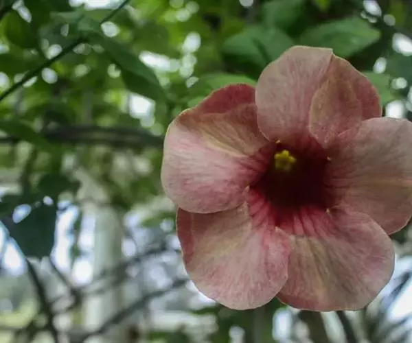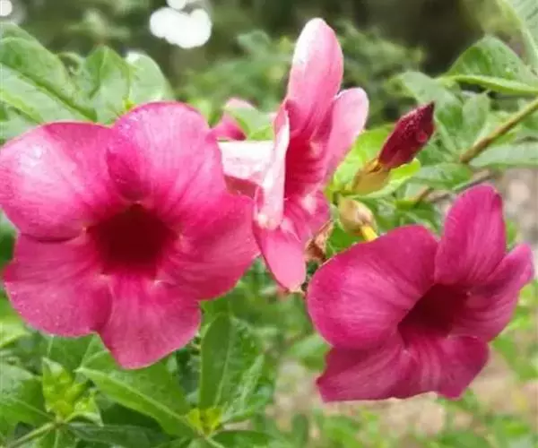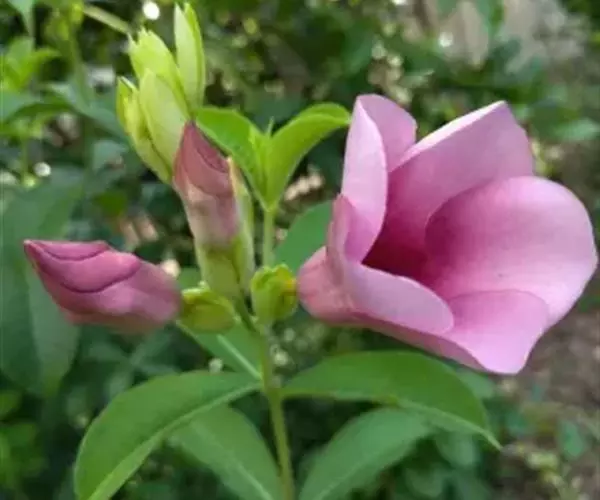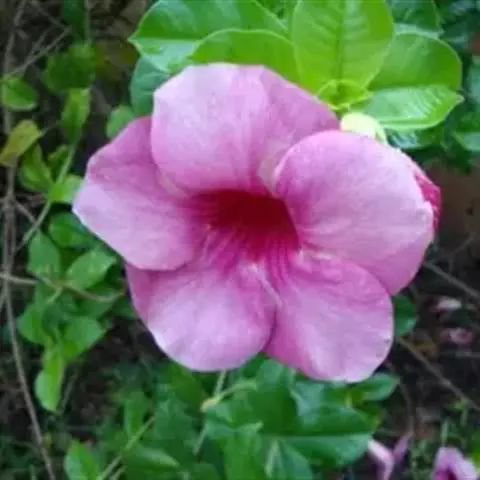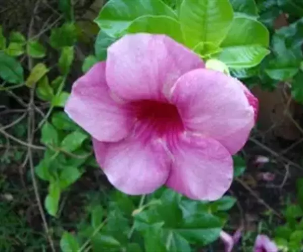 紫蝉花的茎呈蔓性,全株有白色体液。叶4枚轮生,长椭圆形或倒卵状披针形。春末至秋季开花,腋生,漏斗形,花冠5裂,暗桃红色或淡紫红色,柔美悦目,花期长达3-4个月。紫蝉花,优美木本花卉,喜温暖、湿润,适合于红壤,原产于巴西,属野生资源(个体),该品种优质、抗逆,主要用途是供观赏