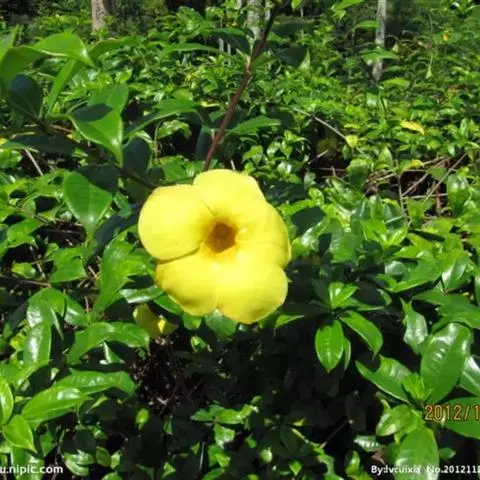 黄蝉属,夹竹桃科,约15种,分布于热带美洲,中国引入栽培的有黄蝉A. neriifolia Hoo…