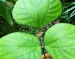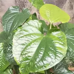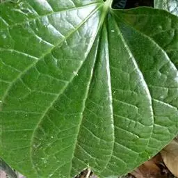蒌叶(学名:Piper betle L.)是胡椒科、胡椒属的攀援藤本植物;枝稍带木质,节上生根。叶片纸质至近革质,阔卵形至卵状长圆形,顶端渐尖,两侧相等至稍不等,腹面无毛,叶脉最上1对通常对生,网状脉明显;叶柄被极细的粉状短柔毛;花单性,雌雄异株,聚集成与叶对生的穗状花序。总花梗与叶柄近等长,花序轴被短柔毛;苞片圆形或近圆形,无柄,盾状,花药肾形,花丝粗,子房下部嵌生于肉质花序轴中并与其合生,浆果顶端稍凸,5-7月开花。