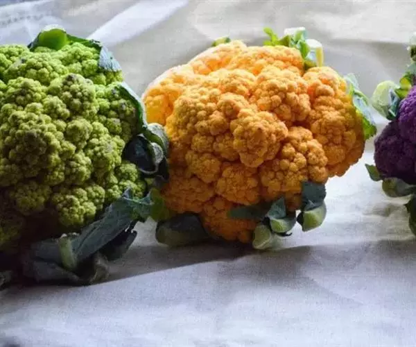 紫色品种花椰菜 花椰菜富含膳食纤维、蛋白质、维生素、脂肪、碳水化合物及矿物质等。其中胡萝卜素含量是大白菜的 8 倍,维生素 B2 的含量是大白菜的 2 倍。钙含量较高,堪与牛奶中的钙含量媲美。是含有类黄酮最多的食物之一。含有一种抗氧化剂异硫氰酸盐化合物。因此花椰菜的食用价值和保健功能都非常高。