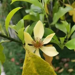 花黄色,芳香,直径5-6厘米;花被片带肉质,9-12片,倒卵形或倒披针形,长4-5厘米,宽1-2.5厘米,内轮的较狭小;雄蕊长15-20毫米,花药长约12毫米,内向开裂,药隔伸出长约1毫米的短尖头,花丝绿色,长约2毫米;雌蕊群圆柱形,长3.5-4厘米;雌蕊长约6毫米,子房卵状椭圆体形,密被银灰色平伏细毛,花柱约与子房等长;胚珠约14枚。花梗具2-4苞片脱落痕。
