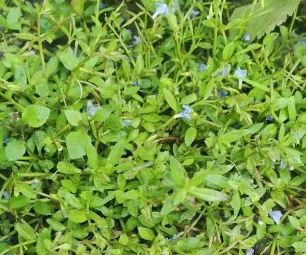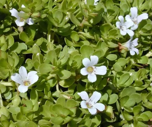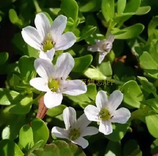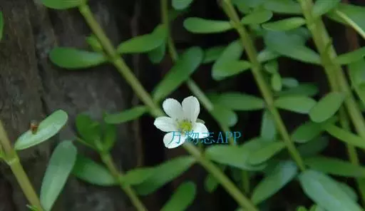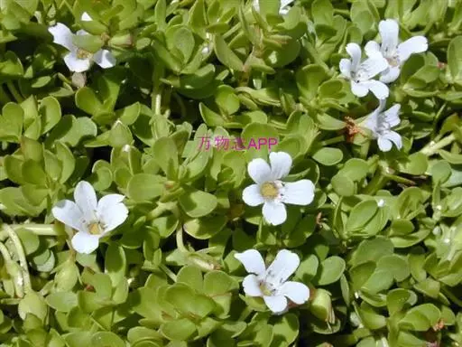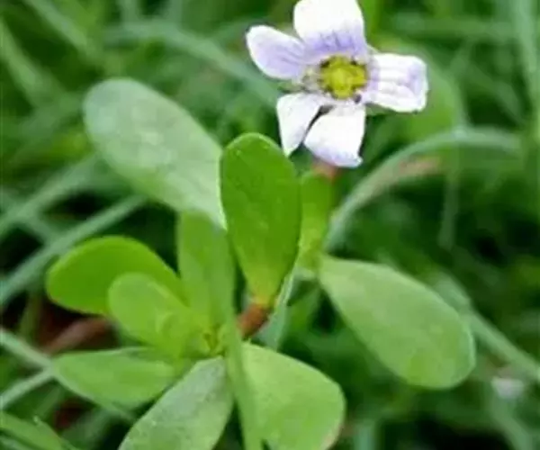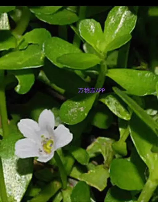假马齿苋(学名:Bacopa monnieri (L.) Wettst.)斯玄参科匍匐草本植物。匍匐草本,节上生根,多少肉质,无毛,体态极象马齿苋。叶无柄,矩圆状倒披针形,长8-20毫米,宽3-6毫米,顶端圆钝,极少有齿。花单生叶腋,花梗长0.5-3.5厘米,萼下有一对条形小苞片。蒴果长卵状,顶端急尖,包在宿存的花萼内,4爿裂。种子椭圆状,一端平截,黄棕色,表面具纵条棱。花期5-10月。