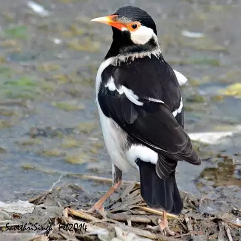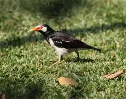 斑椋鸟:是中等体型的黑白色椋鸟,体长24厘米。头顶、头侧、翼斑、腰及腹部白色,喉、胸及上体余部黑色,…
