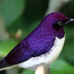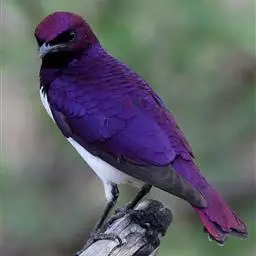 紫翅椋鸟为中国西北地区常见的候鸟。它的主要特点是头、喉及前颈部呈辉亮的铜绿色;背、肩、腰及尾上复羽为紫铜色,而且淡黄白色羽端,略似白斑;腹部为沾绿色的铜黑色,翅黑褐色,缀以褐色宽边。夏羽和冬羽稍有变化。野外观察,通体黑色,闪有紫铜色和暗绿色的金属光泽。