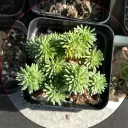 薄雪万年草别名矶小松,景天科景天属多年生草本植物,其细小的蓝绿色棒状叶片环绕生长于茎端,…