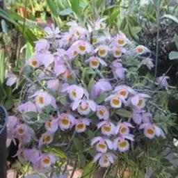 美花石斛是兰科石斛属多年生草本。茎柔弱,斜立或下垂,呈细圆柱形,有时分枝;叶互生于茎上,…