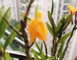 重唇石斛:茎下垂,圆柱形或有时从基部上方逐渐变粗,具少数至多数节。叶薄革质,狭长圆形或长圆状披针形。…
