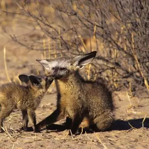 黑背胡狼 它喜欢栖居在洞穴中,一般被认为是食腐动物,是一些一边围绕着坟场不停地嚎叫,一边挖掘死尸吃的动物,因此在当地被人们尊为地狱和死亡之神而贡献祭品。事实上,动物死尸虽然是黑背胡狼的一个重要的食物来源,但在它们食物中的比例并不大。它们的家庭为“一夫一妻”制,雄兽和雌兽结成伴侣后将厮守一生,这在哺乳动物中是不多见的。在当年出生的黑背胡狼幼体中,有三分之一的个体将留在母亲的身边,并与母亲一起度过下一年的繁殖季节。因此经常会形成由3-5只成体组成的群体,其中的非繁殖个体便充当帮手,帮助生育的双亲保护和抚育幼体。 黑背胡狼