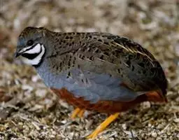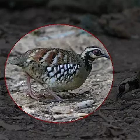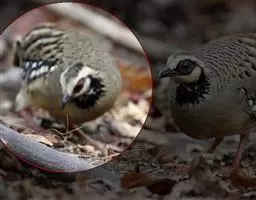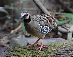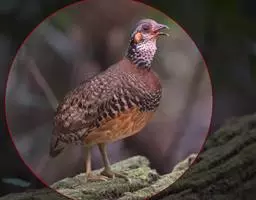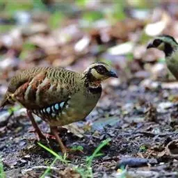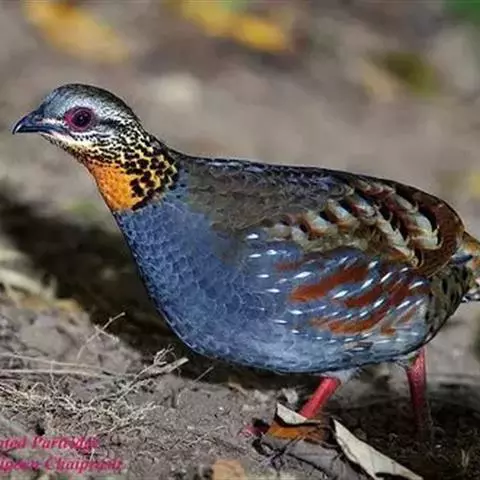 褐胸山鹧鸪:雄鸟体长22厘米,体重310克;雌鸟体长23厘米,体重220-275克。前额皮黄白色,…
