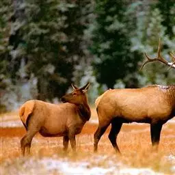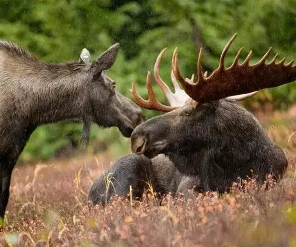 驼鹿(英文名称:moose):是世界上最大的鹿科动物,驼鹿属下共有2个物种8个亚种。驼鹿的名称取意于其肩高于臀,与骆驼相似。它又称堪达罕(满语)、犴达罕(满语)、犴,驼鹿在北美洲称为“moose”(源于东阿布纳基语的“moz”),而在欧洲称为“elk” (“elk”在北美洲被用来称呼加拿大马鹿)。以雄性的掌形鹿角为特征。驼鹿为典型的亚寒带针叶林食草动物,单独或小群生活,多在早晚活动。分布于欧亚大陆的北部和北美洲的北部。不同亚种的毛色有所不同。( 2005年由生物学爱威尔逊和里德认可驼鹿分为欧亚驼鹿和北美驼鹿为不同的独立的物种。)