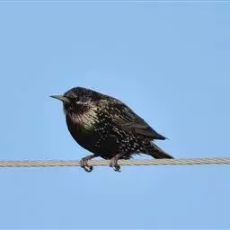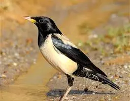 斑椋鸟:是中等体型的黑白色椋鸟,体长24厘米。头顶、头侧、翼斑、腰及腹部白色,喉、胸及上体余部黑色,…