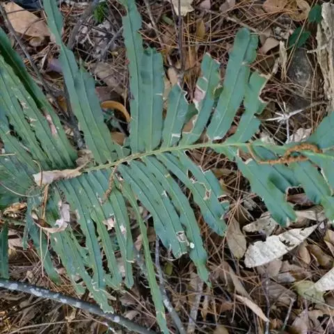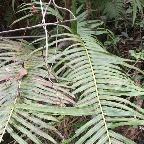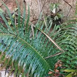 苏铁蕨(学名:Brainea insignis (Hook.) J. Sm)是乌毛蕨科,苏铁蕨属土生,大型草本植物。植株高可达1.5米。主轴木质,坚实,鳞片线形,先端钻状渐尖,边缘略具缘毛,红棕色或褐棕色,膜质。叶簇生于主轴的顶部,叶柄棕禾秆色,坚硬,叶片椭圆披针形,一回羽状;羽片对生或互生,线状披针形至狭披针形,能育叶与不育叶同形,叶脉两面均明显,叶革质,叶轴棕禾秆色,孢子囊群沿主脉两侧的小脉着生,最终满布于能育羽片的下面。