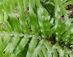 叶脉两面均明显,沿主脉两侧各有1行三角形或多角形网眼,网眼外的小脉分离,单一或一至二回分叉。叶革质,干后上面灰绿色或棕绿色,光滑,下面棕色,光滑或于下部(特别在主脉下部)有少数棕色披针形小鳞片;叶轴棕禾秆色,上面有纵沟,光滑。孢子囊群沿主脉两侧的小脉着生,成熟时逐渐满布于主脉两侧,最终满布于能育羽片的下面。染色体2n=66。
