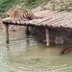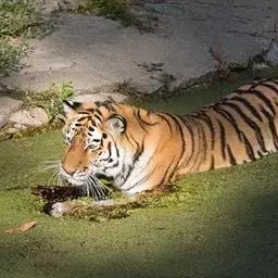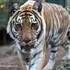 孟加拉虎是肉食目猫科豹属哺乳动物,又名印支虎。头圆、耳短、额阔,额部有数条黑色横纹,…