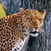 花豹是大型肉食性动物,体形似虎,但明显较小;头小尾长,四肢短健;毛被黄色,满布黑色环斑;头部的斑点…