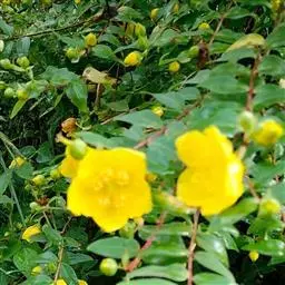 金丝梅是金丝桃科金丝桃属丛状灌木。全株无毛,枝条纵线棱,褐色或红褐色;单叶对生,…