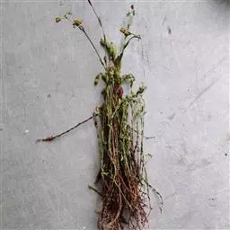 地耳草 干燥全草,茎略呈四棱柱状,光滑,粗约1.5毫米,外表淡黄棕色或暗红棕色,节间长约1~2厘米,易折断。