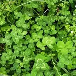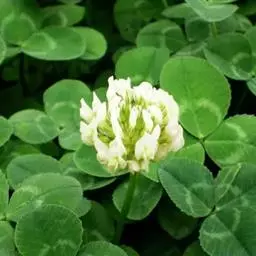 白车轴草,豆科车轴草属的多年生草本植物,茎贴地匍匐;叶柄直立,小叶心形,边缘具细齿,叶脉明显,…