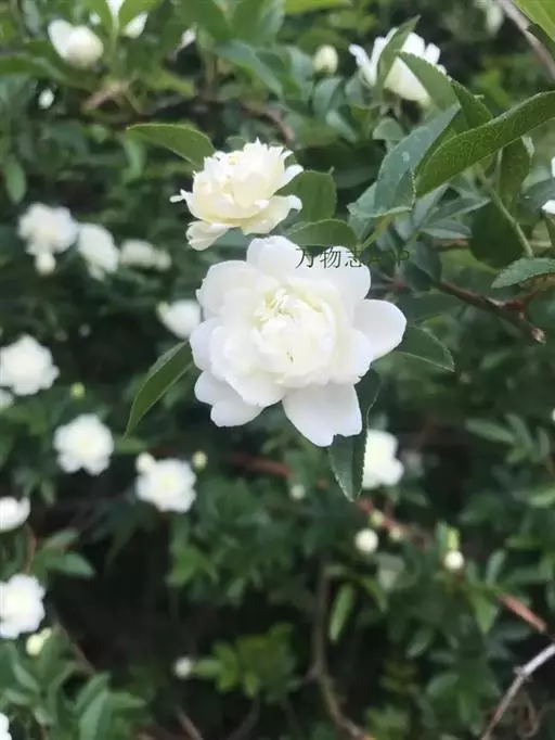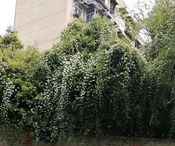 木香花(学名:Rosa banksiae Ait.)是攀援小灌木,高可达6米;小枝圆柱形,无毛,有短小皮刺;小叶3-5,叶片椭圆状卵形或长圆披针形,花小形,多朵成伞形花序,萼片卵形,花瓣重瓣至半重瓣,白色,倒卵形,花期4-5月。生溪边、路旁或山坡灌丛中,海拔500-1300米。