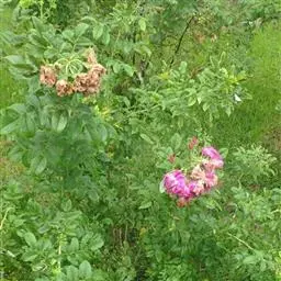 野生蔷薇少有病虫害,人工栽培的常有锯蜂、蔷薇叶蜂、介壳虫、蚜虫以及焦叶病、溃疡病、黑斑病等病虫害,除应注意用药液喷杀外,布景时应与其他花木配置使用,不宜一处种植过多。每年冬季,对老枝及密生枝条,常进行强度修剪,保持透光及通风良好,可减少病虫害。
