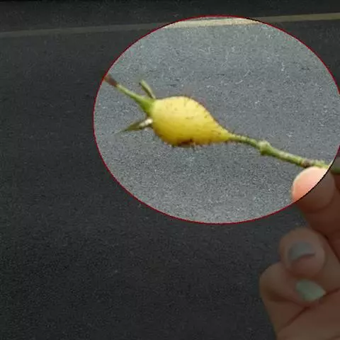 幼枝密被针刺及宽扁大形紫色皮刺,小叶片上面叶脉明显,…