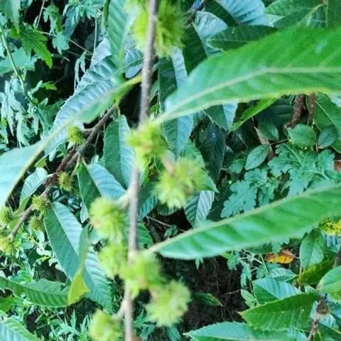 茅栗为壳斗科栗属的乔木或灌木。株高达15米;小枝暗褐色;叶长椭圆形或倒卵状椭圆形,先端短尖或渐尖,…