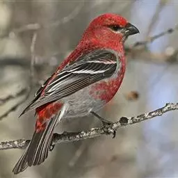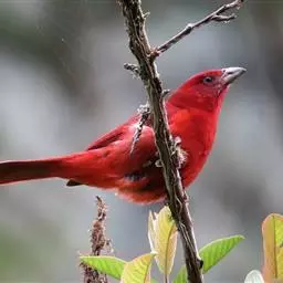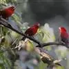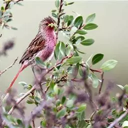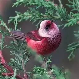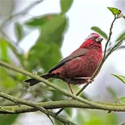 酒红朱雀小型鸟类,体长13~15厘米。雄鸟通体深红色,头部深朱红或棕红色,下背和腰玫瑰红色,…