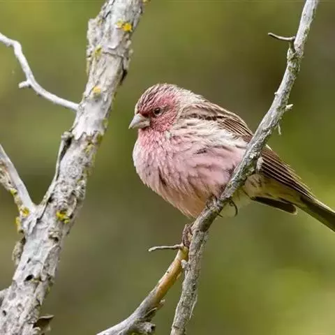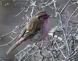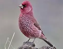 北朱雀,是燕雀科朱雀属鸟类。雄鸟额和头顶前部珠白色具窄的粉红色羽缘,…