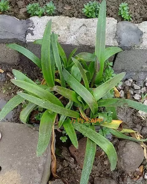 鳞茎近球形,直径5-7.5厘米,并有匍匐枝。叶6-8枚,花后抽出,鲜绿色,带形,长约30厘米,基部宽约2.5厘米。