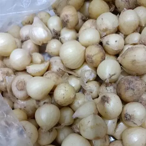 10月上旬挖出鳞茎(注意不要损伤),剪去上部茎叶,将根土洗净,或日晒或阴干,待鳞茎表皮及剪口处干燥后,放室内干燥处或集中沙藏。