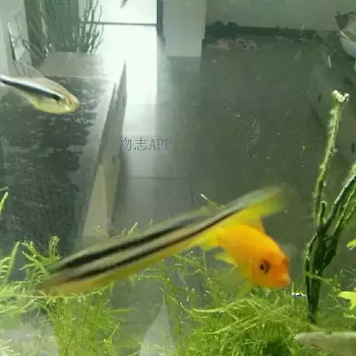 幼鱼身上有二条黑色条纹纵贯。一条位于身体正侧方,由头至尾柄末端,一条位于背部。身体下半部由嘴开始至尾鳍呈明黄色。成年以后的雌鱼依然大体保持着这种体色,雄鱼明黄色的位置则变成了棕黑色或黑色,体侧有一条发出金属光芒的浅蓝色条纹从腮盖后缘到尾柄末端。